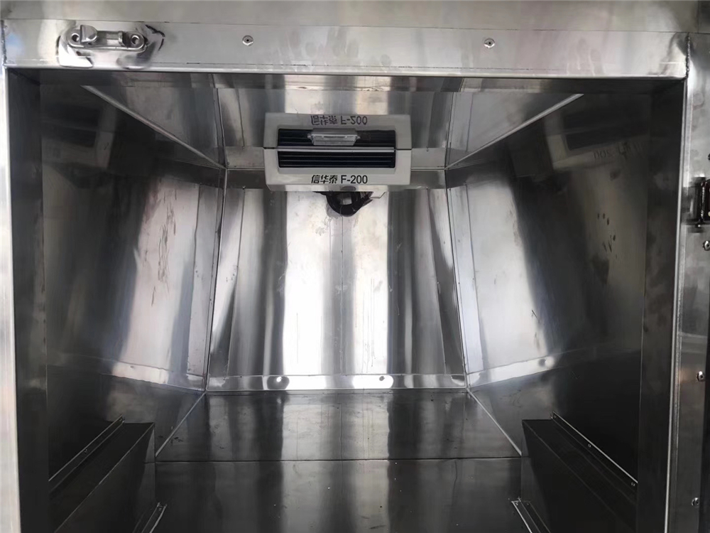1、医疗废物运输车,厢体内采用全密封不锈钢制造,厢体内带一道不锈钢密封内掀门,加装喷雾杀毒装置,加装紫外线杀毒装置,加装废液溢漏箱。