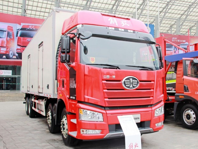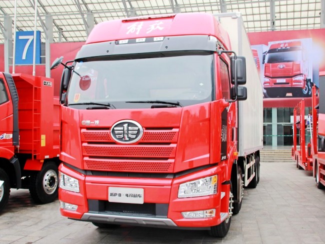 一汽解放2018新款J6M国五8X4冷藏车,配一排半平顶/高顶J6M豪华可翻转驾驶室;车型一、发动机—大柴道依茨6缸320马力国五发动机/功率为239Kw;变速箱—一汽10档变速箱;18吨双轴并装457冲焊桥;轴距1950+4550+1350(mm);11.00R20钢丝胎;厢体内部尺寸9480X2290X2500(mm)厢体容积为54立方米;其它配置标配。车型二、发动机—可选锡柴3款发动机分别为6缸350马力/390马力/420马力国五发动机;变速箱一汽12档变速箱;18吨双轴并装435冲焊桥;轴距2100+4500+1350(mm);12R22.5子午胎;环保达标车型;有燃油公告可办理营运证;上黄牌B证可以驾驶。