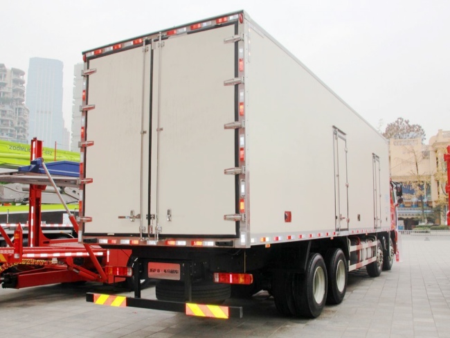 我公司《晶龙工艺》技术,采用1200吨液压加热固化设备一体成型生产线制造,厢体保温技术达到国家A级标准。1、全密封树脂胶粘连聚氨酯发泡板高压加热固化而成,厢板厚度为8cm;2、厢板内外面料为2.5mm厚新款玻璃钢;3、粘连辅料为玻璃纤维丝布;4、板块结构聚氨酯发泡保温材料;5、全密封树脂胶粘连;6、预埋实木厢体加固;7、厢体框架为防锈处理槽钢支撑;8、铝合金包边/不锈钢包角;9、厢体内部加装LED照明灯;10、厢体加装LED示宽灯;11、3.5米厢体以上加装LED边灯;12、厢体后门框为不锈钢制造及不锈钢铰链(俗称:不锈钢合页);13、加厚不锈钢锁件;14、后门加装防撞胶块;15、采用三元乙丙橡胶密封条;16、3M反光胶板。