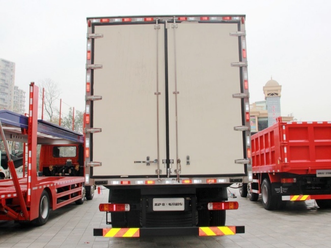 其他 车厢顶部封闭,不可开启,选装双侧门,选装行驶温度记录仪,选装液压尾板,尾板收起状态的水平长度300mm,选装高顶驾驶室,可选装功率相当的其它型号,厂家的制冷机组,安装具有卫星定位功能的行驶记录仪,ABS生产企业:长春科密汽车制动有限公司,型号:CM4XL,侧面防护装置的横杆材料为Q235,螺栓连接,后下部防护装置的横梁材料为16MnREL,螺栓连接,断面尺寸110×90mm,离地高为500mm,油耗对应关系:40.66(CA6DL2-35E5),40.23(CA6DM2-39E51,CA6DM2-42E51)