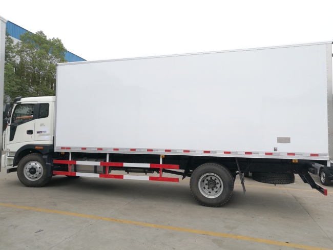 其他 货箱顶部封闭,不可开启.侧面及后下部防护装置的所用材料材质为Q235A,连接方式为螺栓连接,后部防护装置的断面尺寸为100×50mm,离地高度为540mm,安装具有卫星定位功能的行驶记录仪,液压尾板收起状态水平长度300mm.选装不带尾板货箱.选装前格栅.随底盘选装新前围及后视镜,随底盘选装后部灯具.选装货箱风格,选装同等功率制冷机组.ABS型号为CM4XL-4S/4K(4S/4M),生产厂家为广州科密汽车电子控制技术股份有限公司,发动机ISF3.8s5168油耗为27.5,发动机ISF4.5S5185油耗为27.3