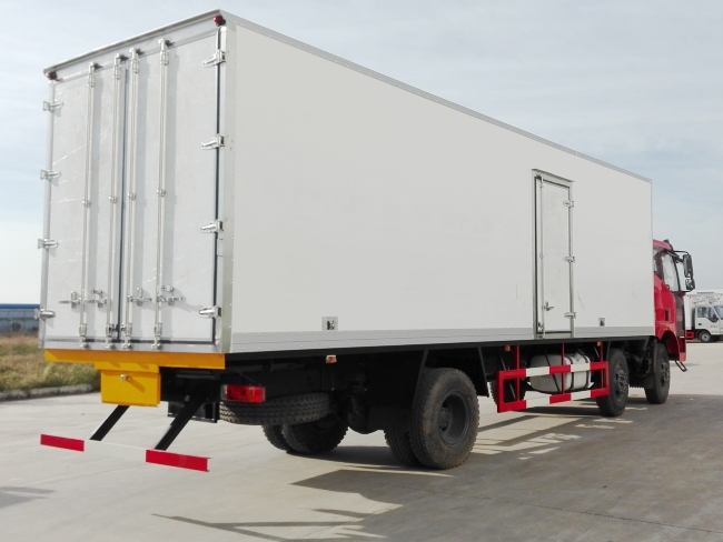 其他 车厢顶部封闭,不可开启,选装单侧门,双侧门,选装液压尾板,尾板收起状态的水平长度300mm,选装宽体保险杠,脚踏板,可选装功率相当的其它型号的制冷机组,选装符合QC/T449-2010规定的行驶温度记录仪,侧面防护装置的横杆材料为Q235,螺栓连接,后下部防护装置的横梁材料为16MnREL,螺栓连接,断面尺寸115×60,离地高度为500,ABS防抱死制动系统生产厂家:长春科密汽车制动有限公司,型号:CM4XL,安装具有卫星定位功能的行驶记录仪,油耗申报值与发动机对应关系:37.2(BF6M2012-22E5),31.5(CA4DK1-22E5),30.96(CA6DK1-24E5),37.31(CA6DH1-24E5),长度对应关系:11150=1400+1900+4700+3150(8700厢长),10150=1400+1900+4300+2550(7700厢长).