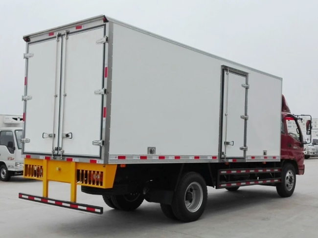 其他 厢体顶部封闭,不可开启,可选装导流罩,可选装新保险杠,可选装双侧开门,可选装取消侧开门,可选装液压尾板,不同尾板收起状态下对应水平长度为295mm,400mm,选装液压尾板时,整备质量为5490,载质量为4305;侧防护材料为冷板B-2.0,后防护材料为矩形管20-D-100×50×3,均为螺栓连接.后部防护装置截面尺寸100mm×50mm,离地高度535mm,ABS系统型号:ECU:4460043200;电磁阀:4721950180;生产企业:威伯科汽车控制系统(中国)有限公司;ABS系统型号:ABS-VI.E;生产企业:广州瑞立科密汽车电子股份有限公司;可选装同等功率制冷机组