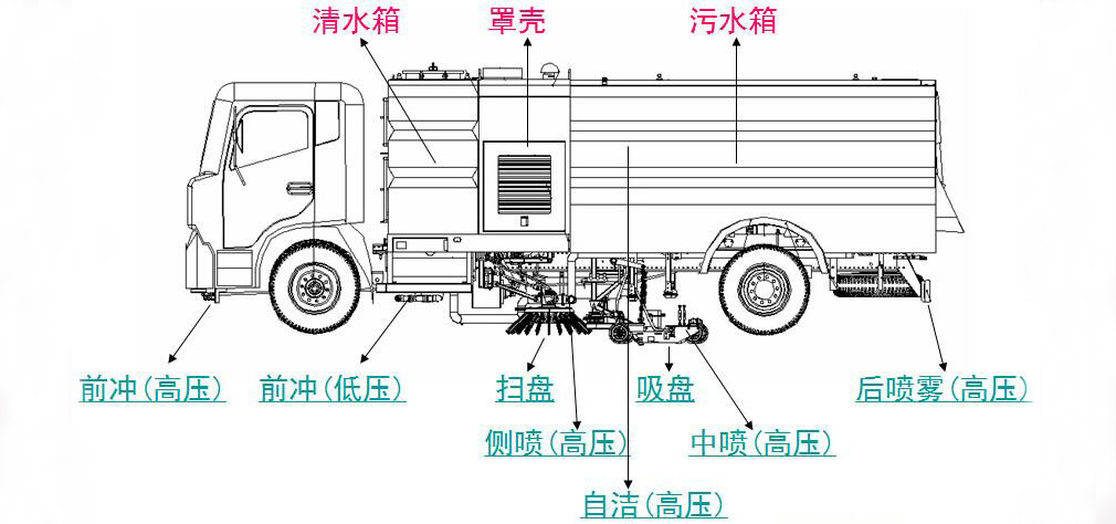 • 洗扫车是采用二类底盘而改制的新一代路面作业车。该车既可单独作为扫路车进行路面清扫抽吸作业又可作为高压冲洗车进行路面冲洗作业,以满足不同用户的多种需求。
