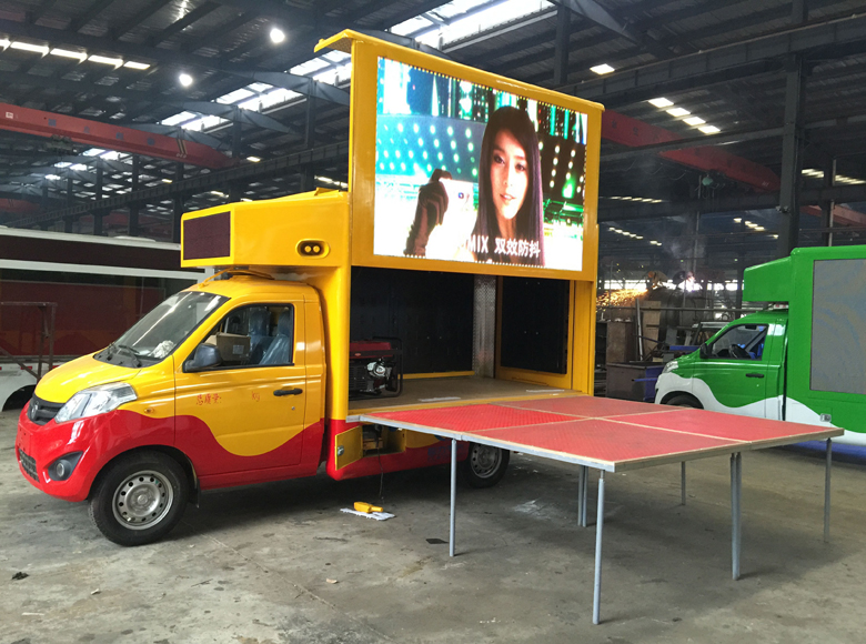 • LED广告宣传车:是将汽车与大型LED显示屏有机结合,三维视频动画形式,内容丰富多样,实时显示图文信息,可以进行移动式广告宣传的一种新型传播介质。 一般用于产品推广、品牌推广、选秀活动、销售现场展示、体育赛事、演唱会、音乐会等。可以进行现场展示、交流、互动,宣传范围广泛,可以有效获得最大的广告传播效果。