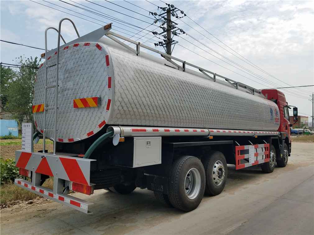 其他 该车适用于危险品运输,运输介质:柴油,汽油,煤油,介质密度分别为:0.83吨/立方米, 0.75吨/立方米, 0.80吨/立方米,类项号:3;罐体有效容积:22.7立方米, 罐体外形尺寸(长×长轴×短轴)(mm)为:8400×2450×1560。防护材料:Q235A碳钢,连接方式:左右侧面及后部防护均采用焊接连接,后部防护断面尺(mm):120×50, 后部防护离地高度(mm):520。仅采用底盘子午线轮胎和带ABS的底盘,该车前轮安装盘式制动器,前置排气管,装配限速装置,限速80km/h。安装带有卫星定