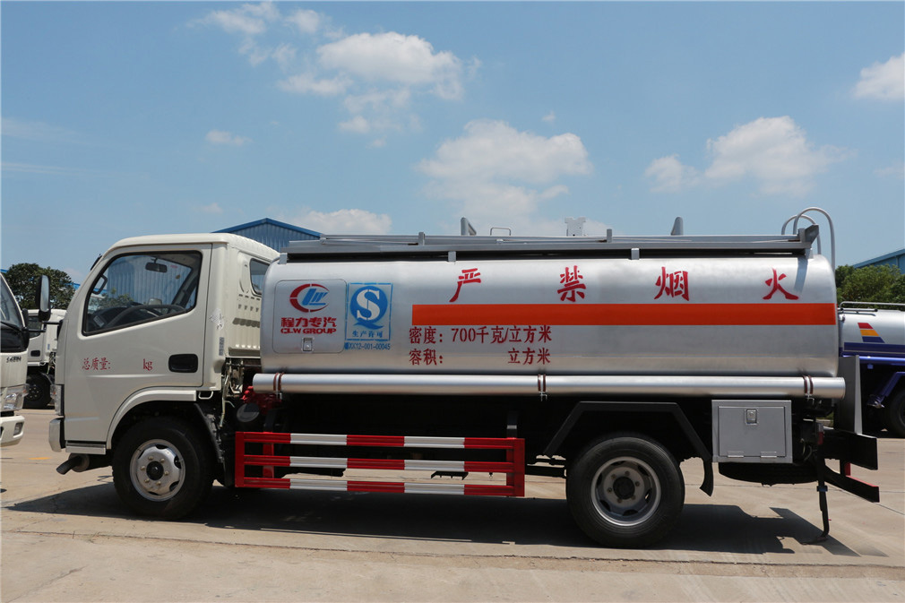 其他 1、该车适用于危险品运输。类项号:3;罐体有效容积:5.09立方米,罐体外形尺寸 (长×宽×高) (mm):4000×1750×1150(罐体前部900mm的位置安装加油机,当加油机装置选装下挂式时,右侧防护由工具箱代替,且罐体尺寸为4000mm×1700 mm×1100 mm)。2、该车可装配;恒和嘉华牌 ,伯莱牌,正星牌,恒山牌,华特牌数控加油机,其型号对应为: SKES-1112,SKDS-2001A,SC20D1110F,HS1812B,HT-YV60E,对应生产厂家为:恒和嘉华科技有限公司 ,上海伯莱机械有限公司,正星科技有限公司,托肯恒山科技(广州)有限公司,随州市华特专用设备有限公司。3、车辆颜色和文字喷涂位置可变化。4、防护材料:Q235A碳钢,连接方式:左右侧面及后下部防护均采用焊接连接,后部防护断面尺寸(mm):200×50,后部防护离地高度(mm):530。5、随底盘选装驾驶室,仅选用装子午胎型号(7.00R16LT 14PR),限速装置,辅助制动装置和前盘制动器的底盘;该车应装具有卫星定位功能的行驶记录仪。6、ABS厂家及型号:襄阳东风隆诚机械有限责任公司/ABS/ASR-24V-4S/4M。7、危险货物运输车辆的车辆类型(FL型车辆)。