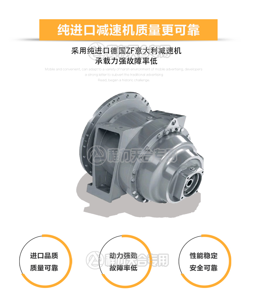 减速机 德国ZF 减速机/ 意大利邦飞利 PMP(纯进口) 液压系统: 德国力士乐、/美国伊顿/美国萨奥/意大利PMP(纯进口)