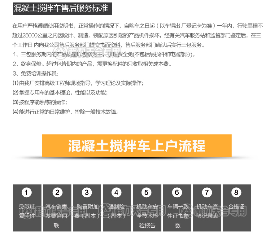 售后服务: 底盘和上装三包售后服务一年或三万公里