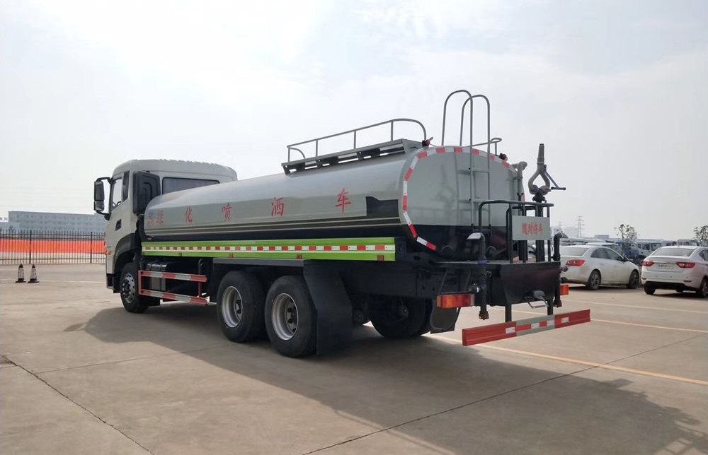 其他 1、该车仅选用4350+1350mm轴距;2、罐体有效容积:14.49立方米,当选装普通后平台时罐体尺寸(长×长轴×短轴)为(mm):6900×2300×1320,当选装喷雾机组后平台时罐体尺寸(长×长轴×短轴)为(mm):6300×2300×1450;3、侧防护及后下部防护装置均采用Q235B材质,均采用螺栓连接,后下部防护尺寸:150×50(mm),离地面高度480mm;4、ABS型号/生产厂家:3631010-C2000/东科克诺尔商用车制动系统(十堰)有限公司,ABS 8/东科克诺尔商用车制动系统(十堰)有限公司,4460046450/威伯科汽车控制系统(中国)有限公司;5、该车可选装:A,后部带弧形喷雾和LED箭头指示灯;B,后部带LED箭头指示灯;C,后部带弧形喷雾装置; D,可选装新款外观带雾炮平台;6、专用装置:罐体,主要用于路面洒水及园林绿化;7、随底盘选装驾驶室。