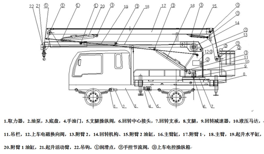其他 1、该车作业高度为22米。上装选装三节工作臂时,作业高度为20米。2该车后伸为700mm。整车前伸/轴距对应关系为(mm):620/4700,820/4500。3、防护材料:Q235A碳钢,连接方式:左右侧面及后下部防护均采用焊接连接,后部防护断面尺寸(mm):180×50,后部防护离地高度(mm):480。4、ABS型号: J ABS,生产厂家: 焦作博瑞克控制技术有限公司。5、文字喷图位置和车辆颜色可变化。6、该车可选用9.00R20 16PR和10.00R20 14/16/18PR规格的轮胎。