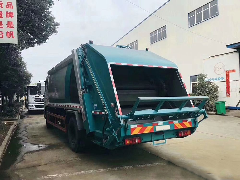 2.后带10立方压缩垃圾箱,尾部带挂桶翻转机构,为不可回收垃圾区